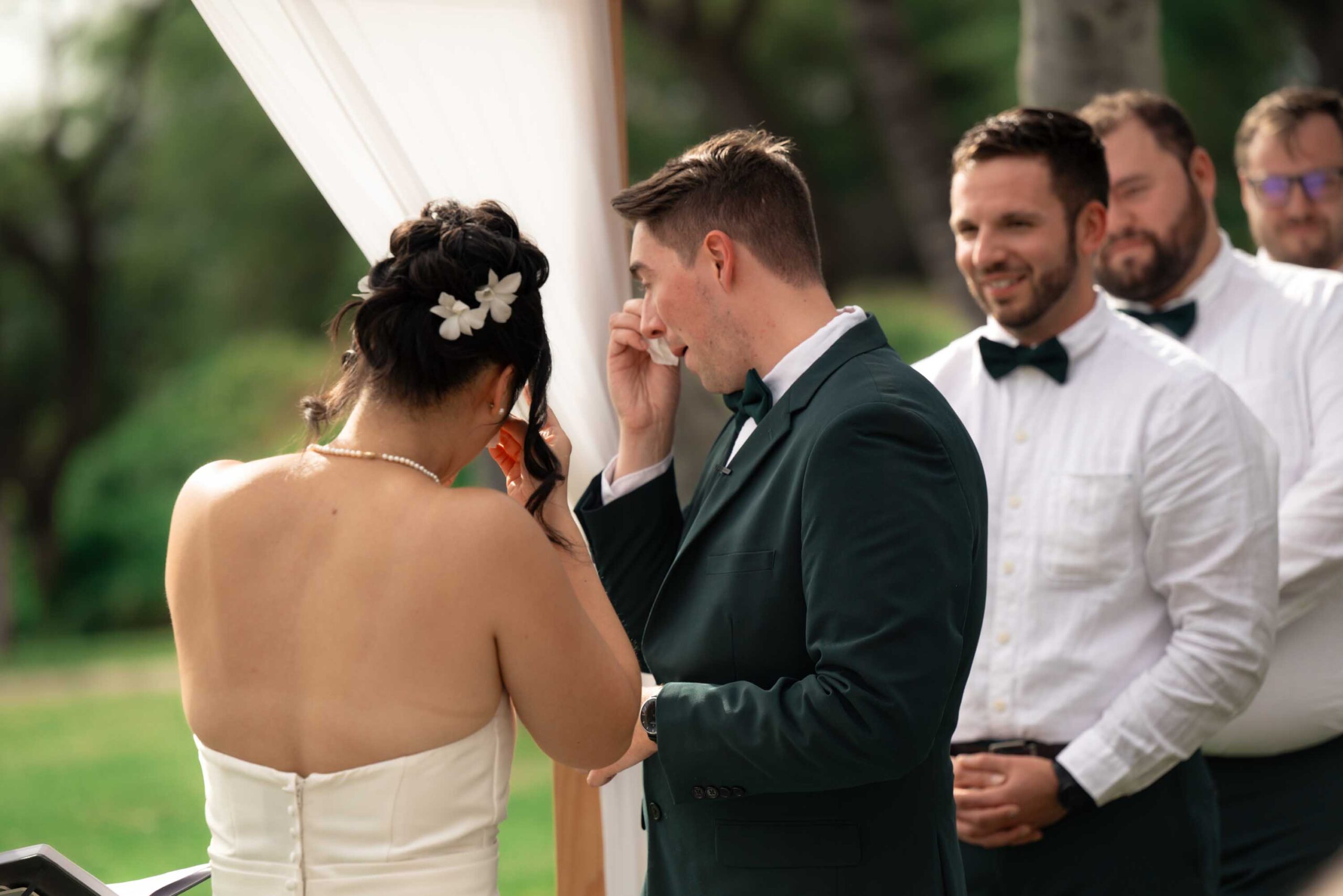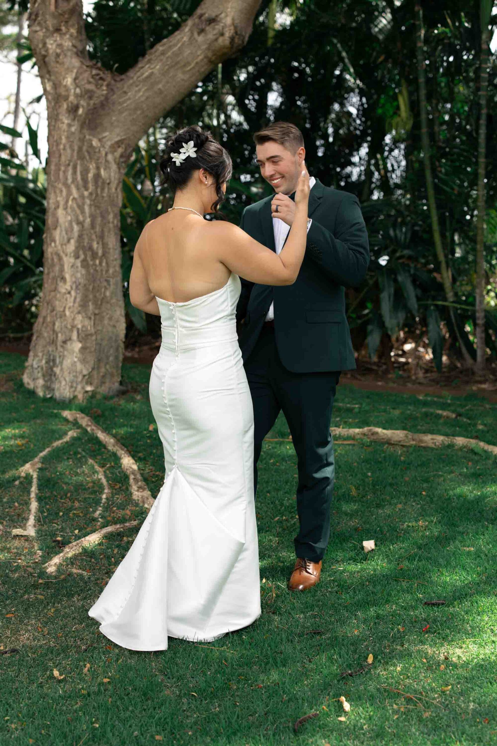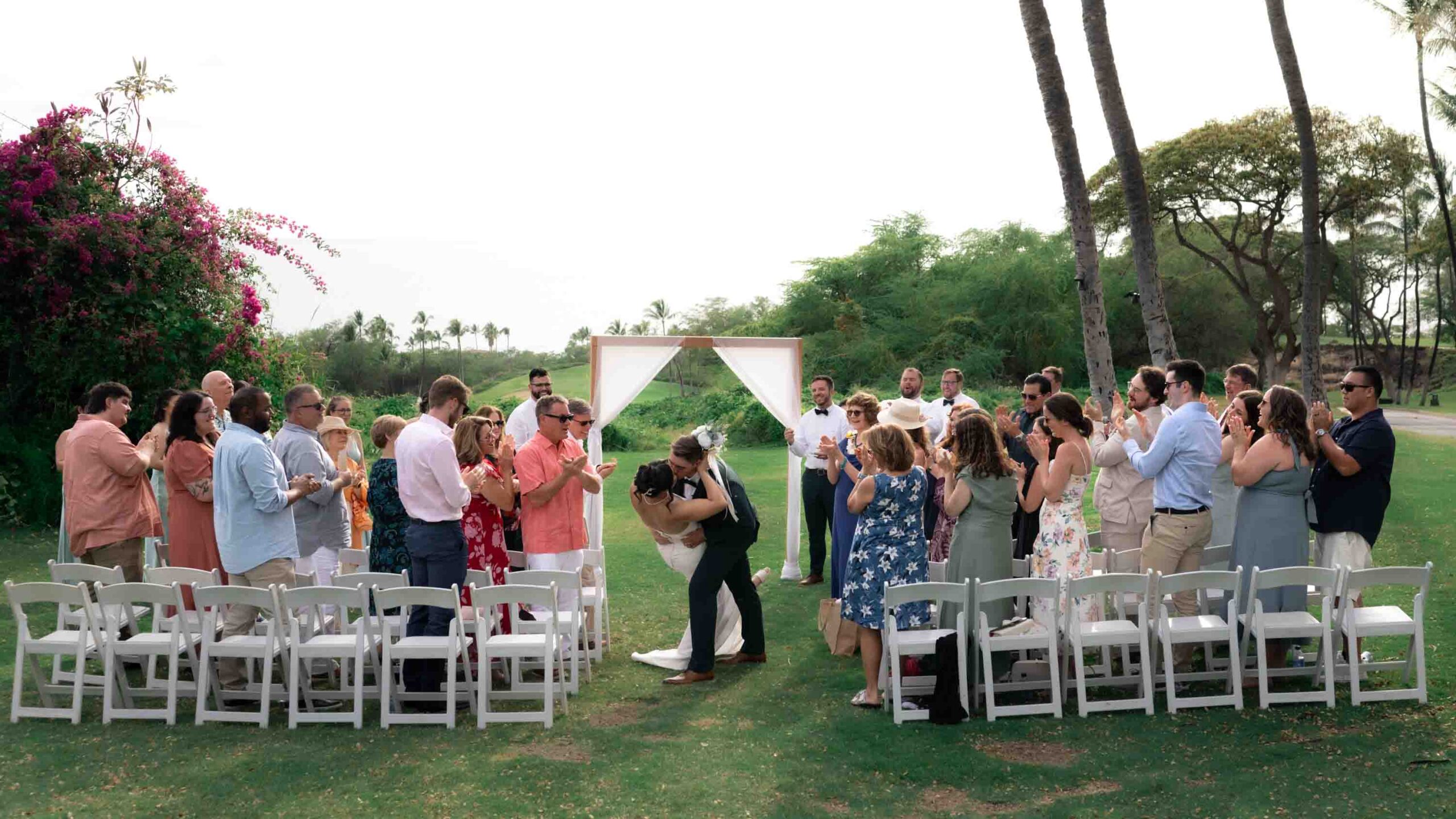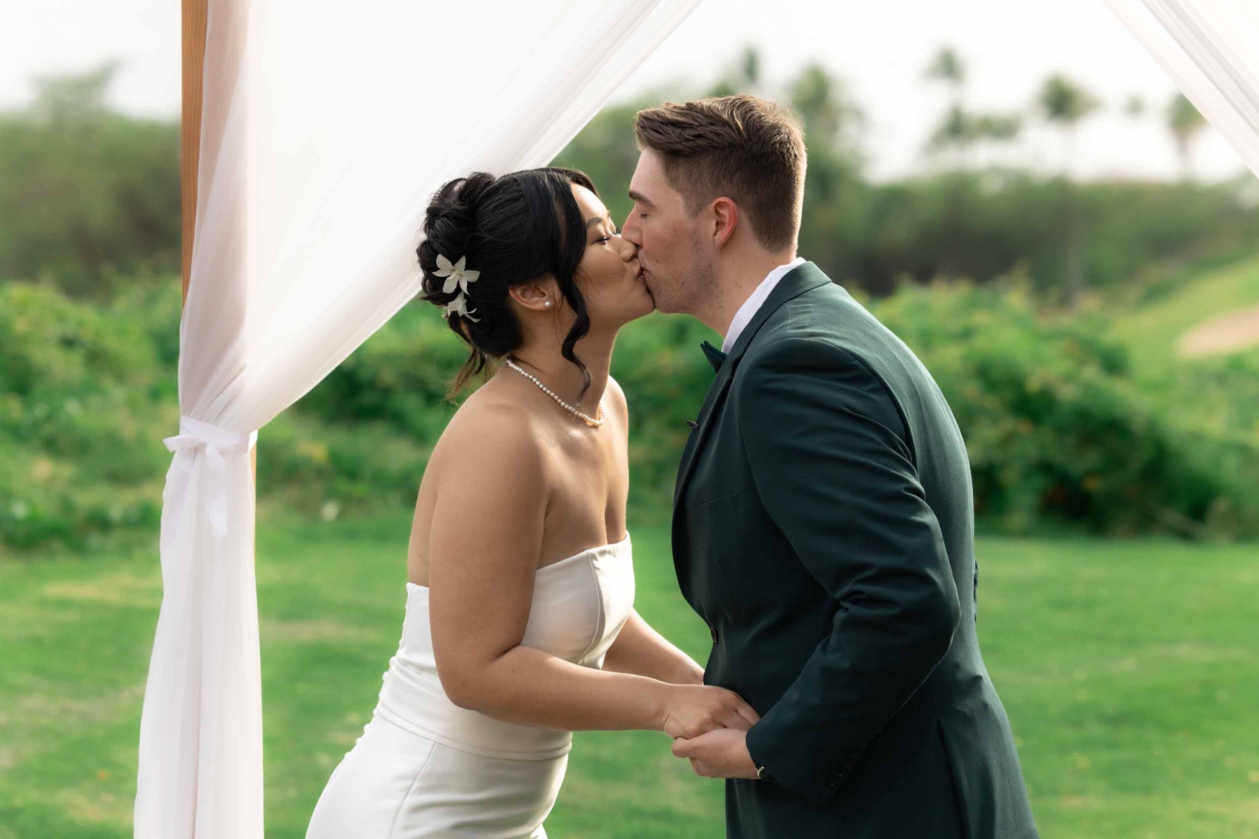 Before joining their guests, Annie and Kyle shared an intimate first look – a private moment between just the two of them, their last quiet pause before the celebrations began. The ceremony took place at the stunning Gather on Maui, where the natural beauty of the island provided an exquisite backdrop for their union.