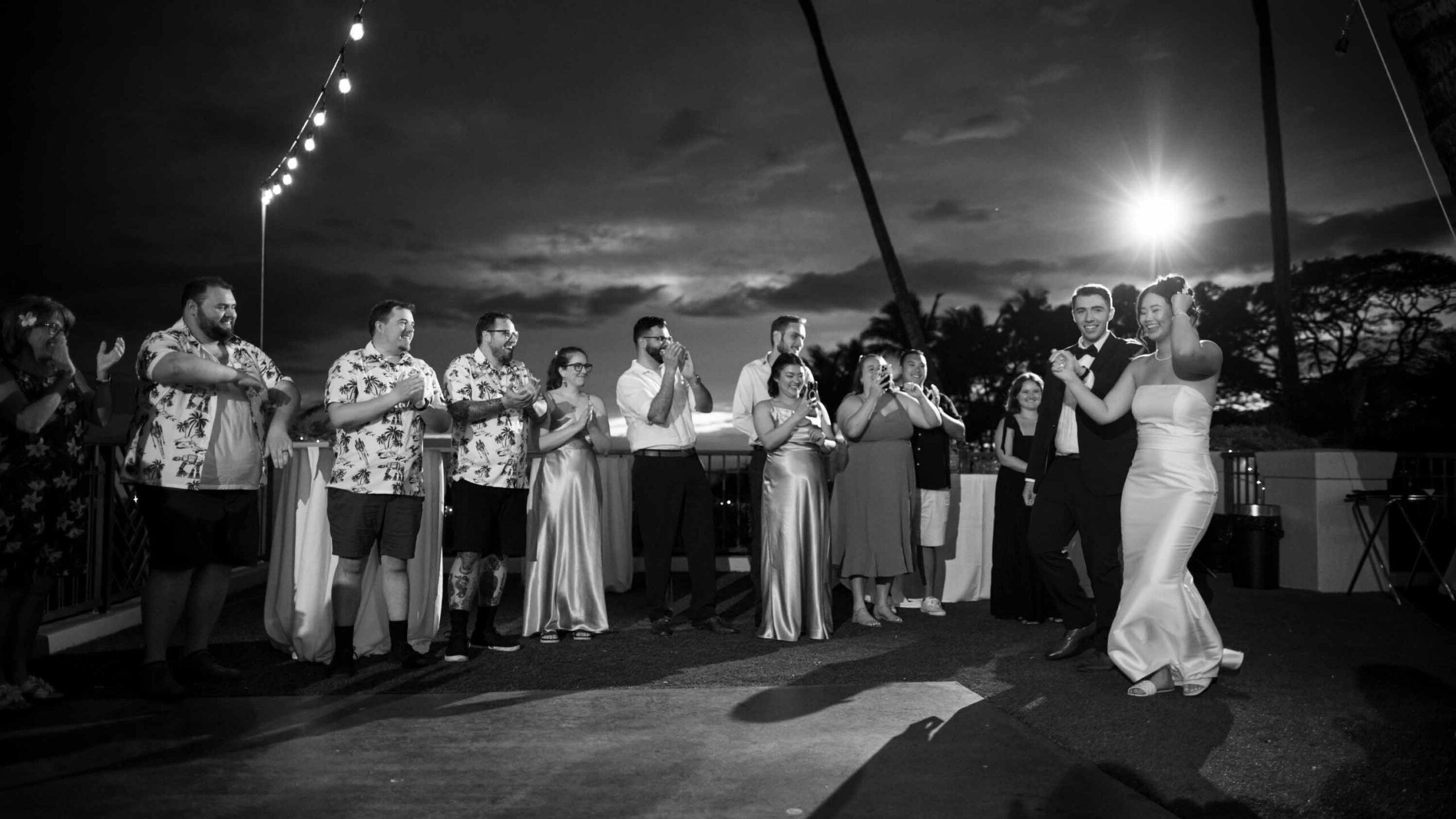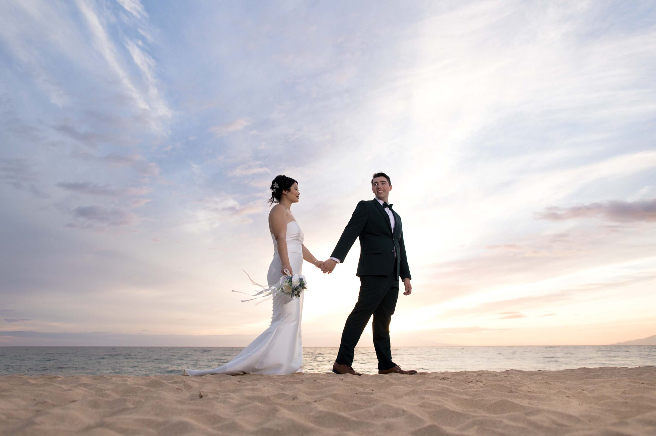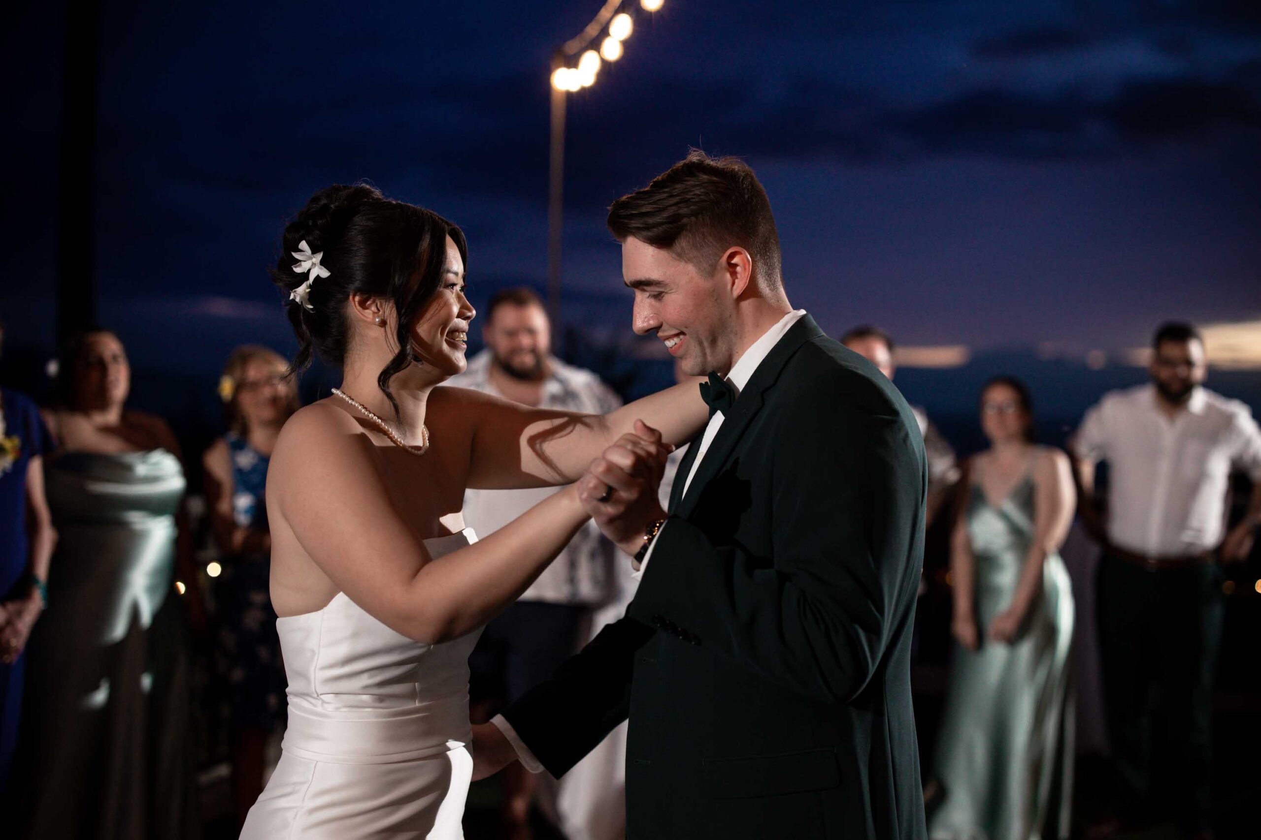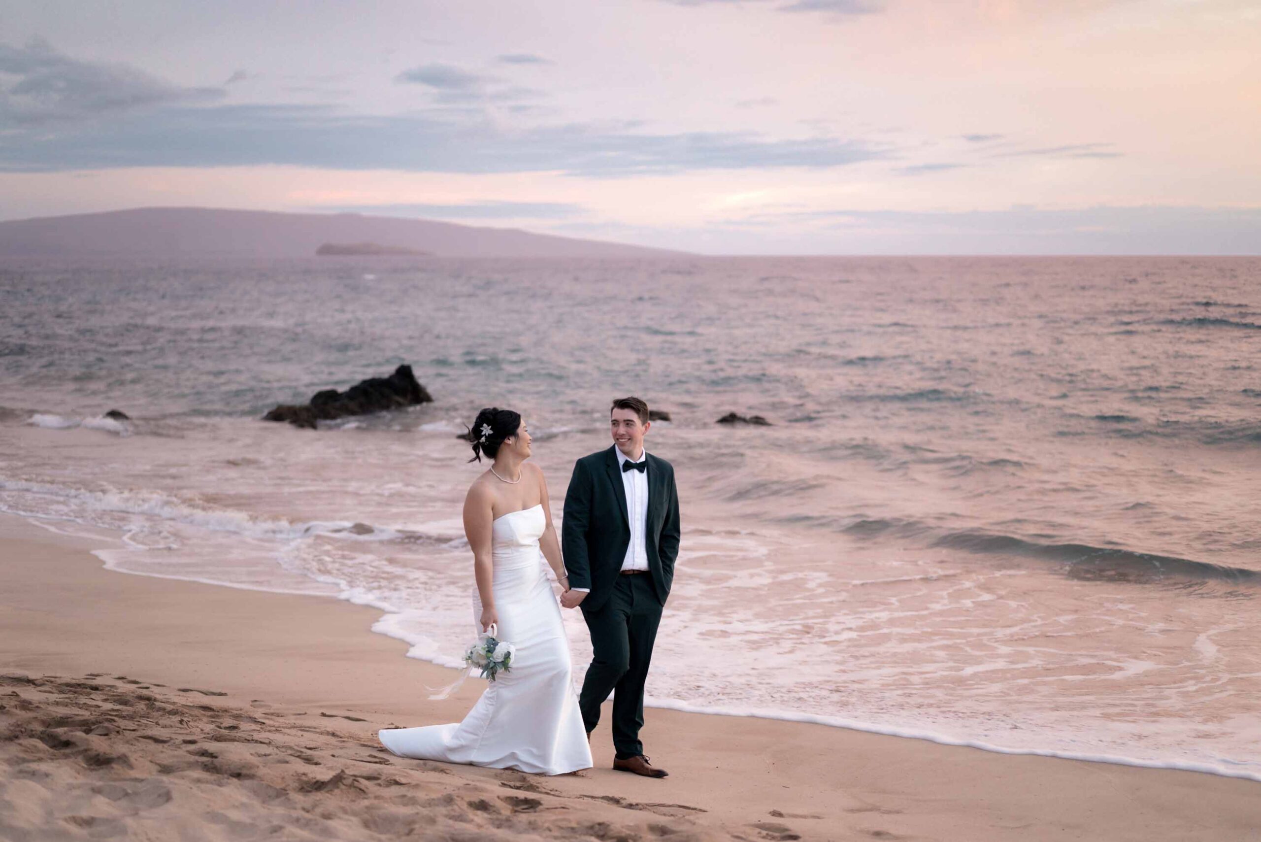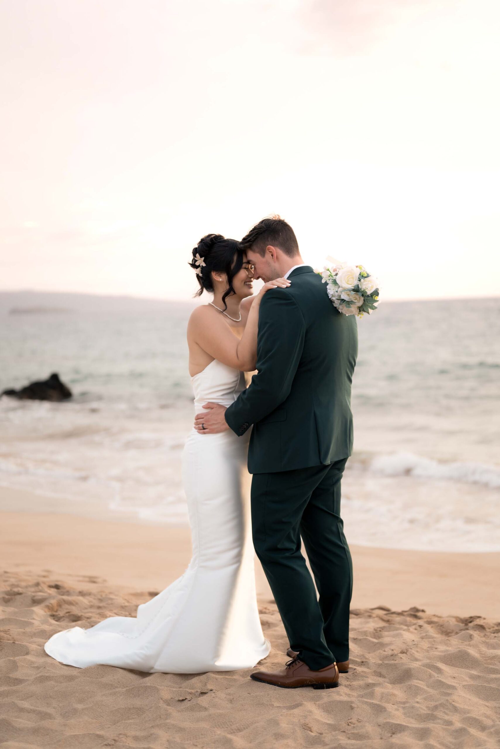 As evening fell, guests celebrated while the newlyweds took advantage of the venue’s spectacular grounds, including a romantic beach photo session that captured the essence of their Maui wedding day.