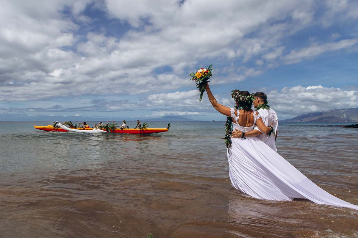 Sanny & Iñaki's Wedding adventure - married in Ho'okipa, sunset photos Makena Secret Cove and Underwater photos Launiopoko